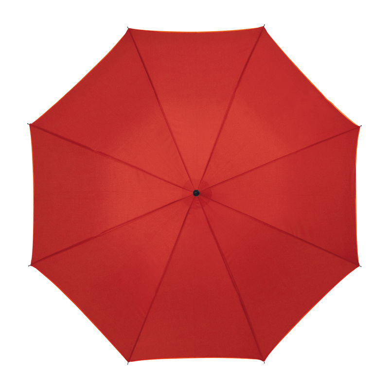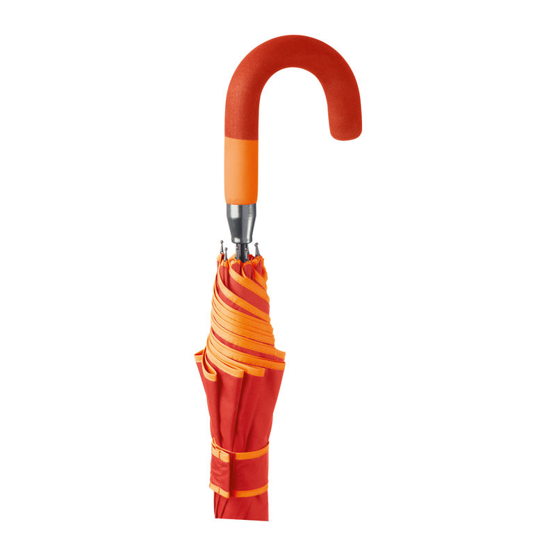 190T poliészterből készült esernyő, fém ruddal és színes gumiborítású nyéllel.