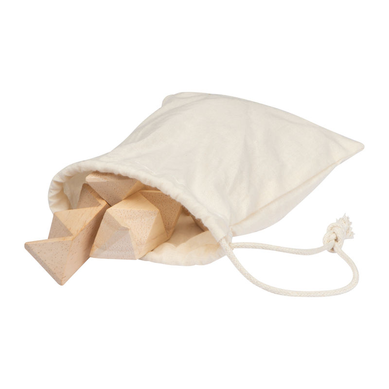 Különleges, csillag alakú, 3D fa kirakós. A zárható pamutzacskó biztosítja, hogy a darabok ne vesszenek el.