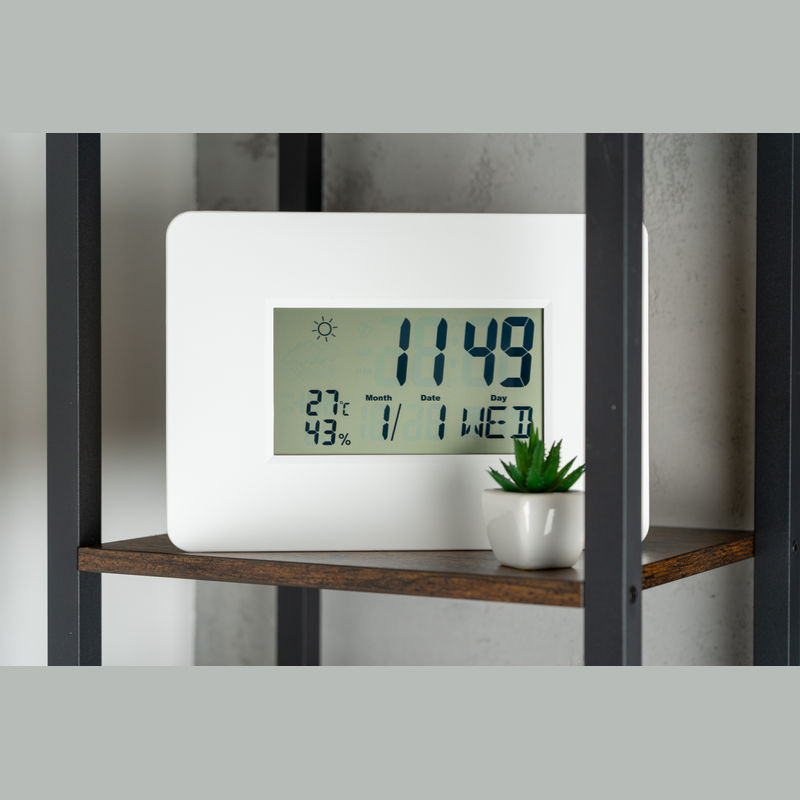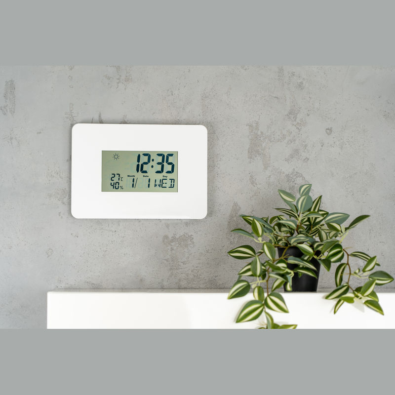 Digitális időjárás állomás naptárral, ébresztő- és szundi funkcióval, hőmérővel és páratartalommérővel (az értékek automatikus frissítése 20 másodpercenként történik) és időjárás kijelzővel. A hozzávaló AAA elem külön rendelhető (cikkszám: 999400).