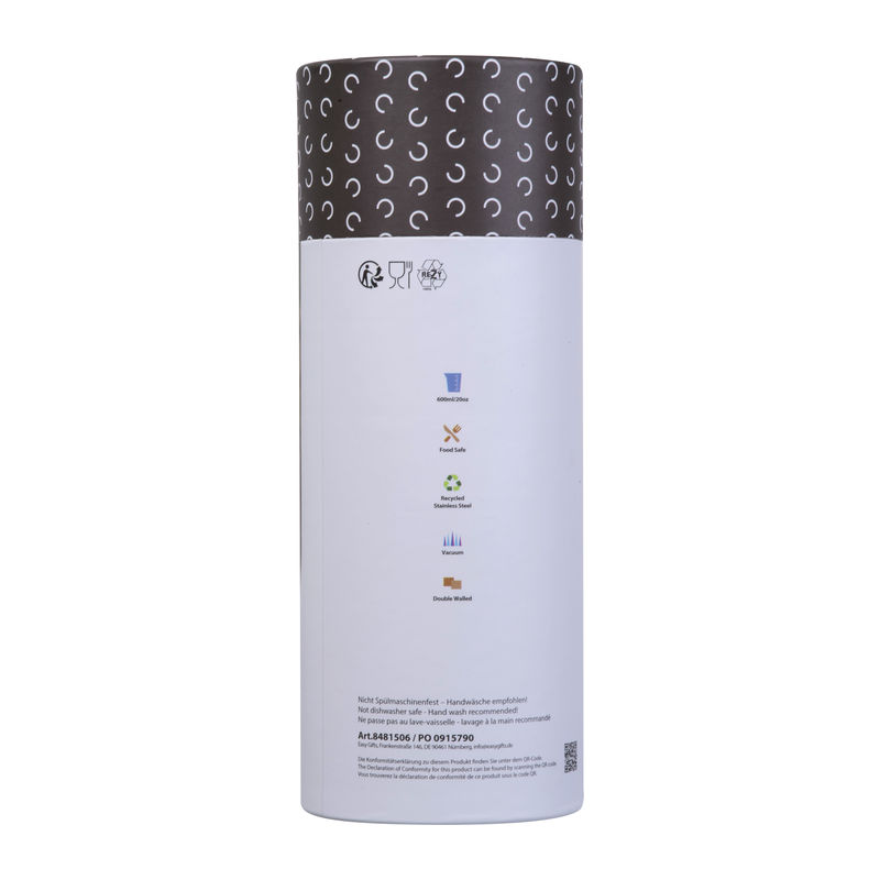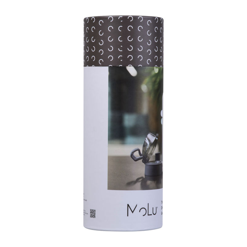 Stílusos MoLu termosz, amely újrahasznosított rozsdamentes acélból készült, duplafalú vákuumszigeteléssel, amely hosszú ideig melegen vagy hidegen tartja az italokat. A kulacs 600 ml űrtartalmú, és praktikus, kattintható kupakkal van ellátva a könnyű használat érdekében. Funkcionális, magas minőségű, ideális útközbeni használatra. Exkluzív ajándékcsomagolásban, 2 év garanciával.