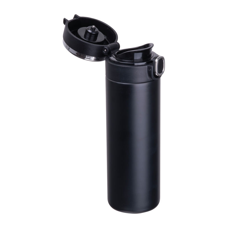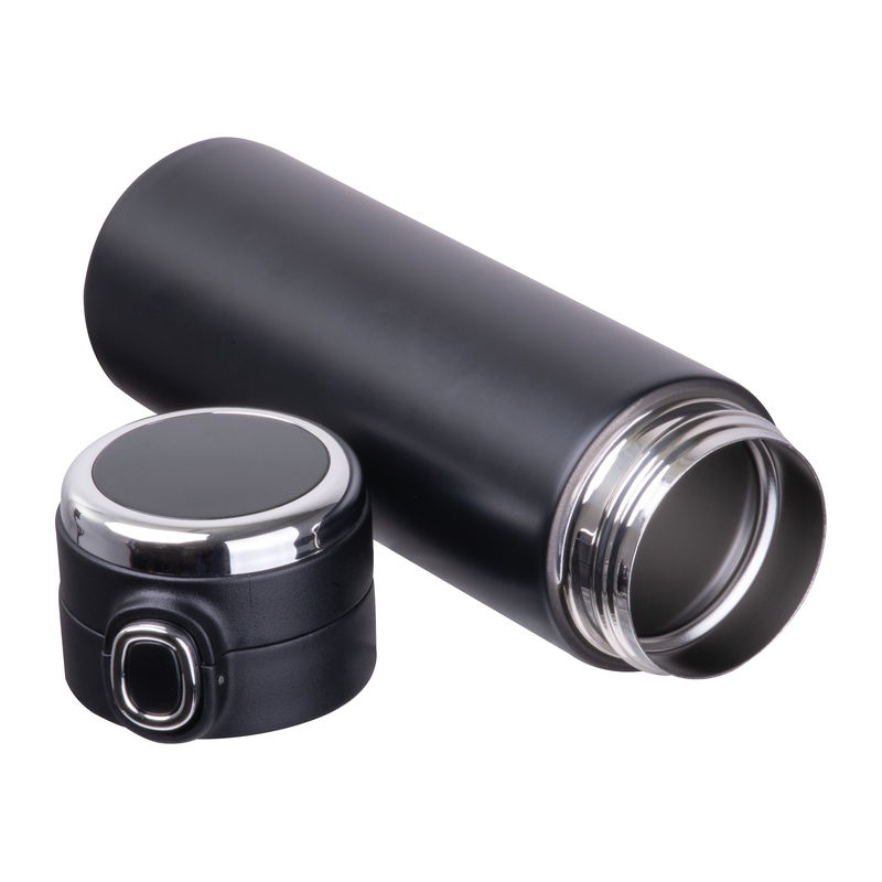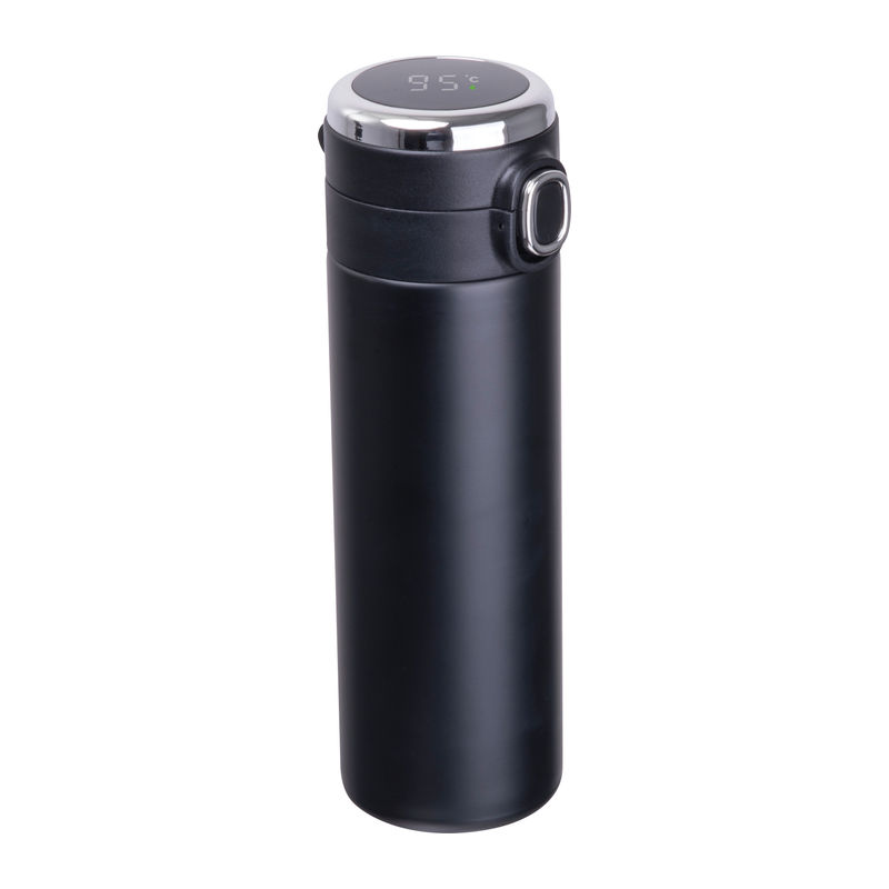 Rozsdamentes acélból készült vákuumos duplafalú ivópalack, amely hőmérséklet-kijelzővel rendelkezik a kupakon, valamint biztonsági zárral van ellátva. A maximális kijelzett hőmérséklet 99 °C.