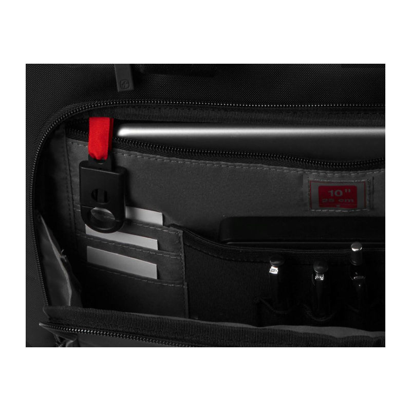 16" laptop és 10" tablet tárolására alkalmas bélelt rekesz, rendező, rekesz elválasztó a praktikus tárolás végett, párnázott fül. Tollak, kulcsok, névjegykártyák és egyéb apró cikkek könnyen elhelyezhetők a táska számos zsebében.